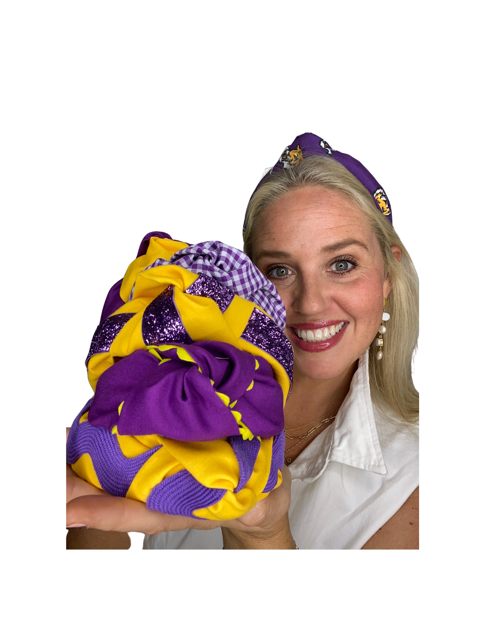 Handmade knotted headband made by women in the United States. Pretty Happies’ stylish, versatile headbands will comfortably mold to your head and can be easily refit for someone else at any time. Hand wash and air dry. Don't put it in your purse keep it on your head!