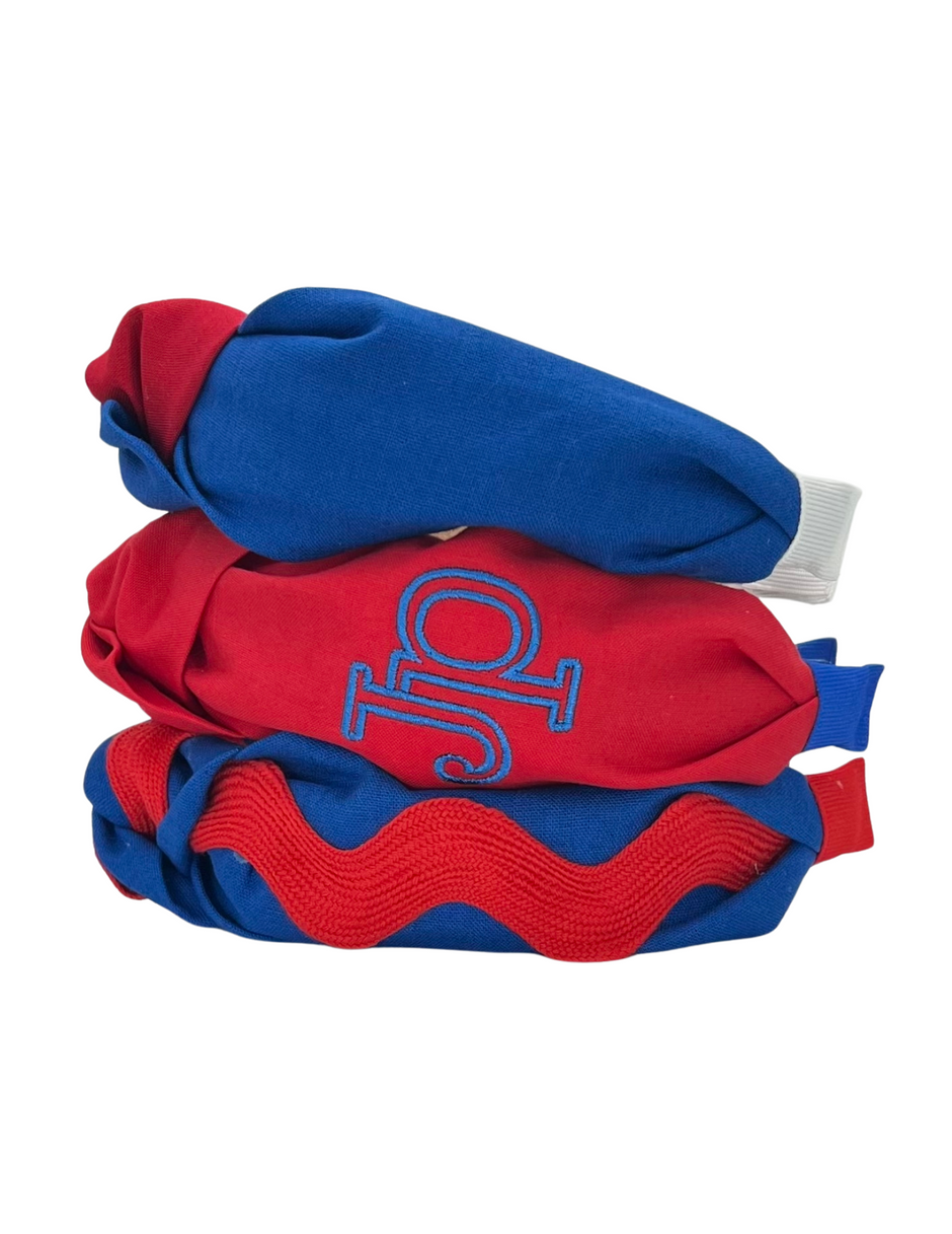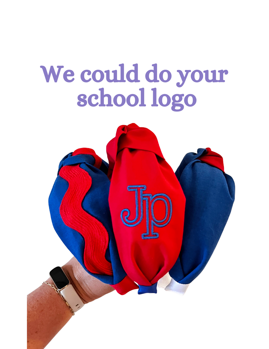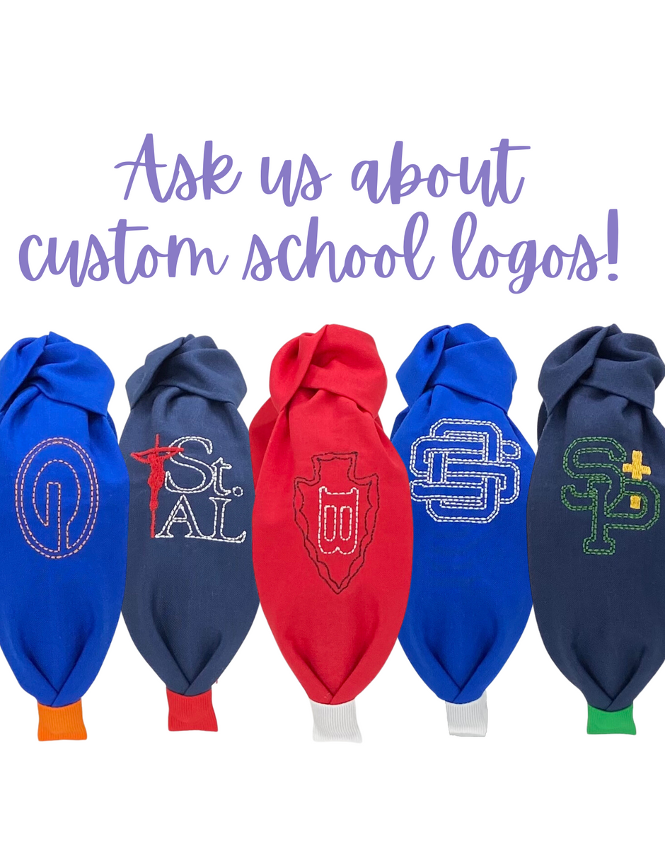 We love team spirit from elementary schools, little league, competitive cheer and beyond. There is not a team organization we don't think needs to be celebrated and what better way than with headbands! We can make up sets that vary in price point, we can do custom monograms or come up with one show stopper for a fundraiser. We like to figure out what is best for your spirit store or group and create just that. Teams can either go through Faire or contact us at info@prettyhappies.com for custom orders.