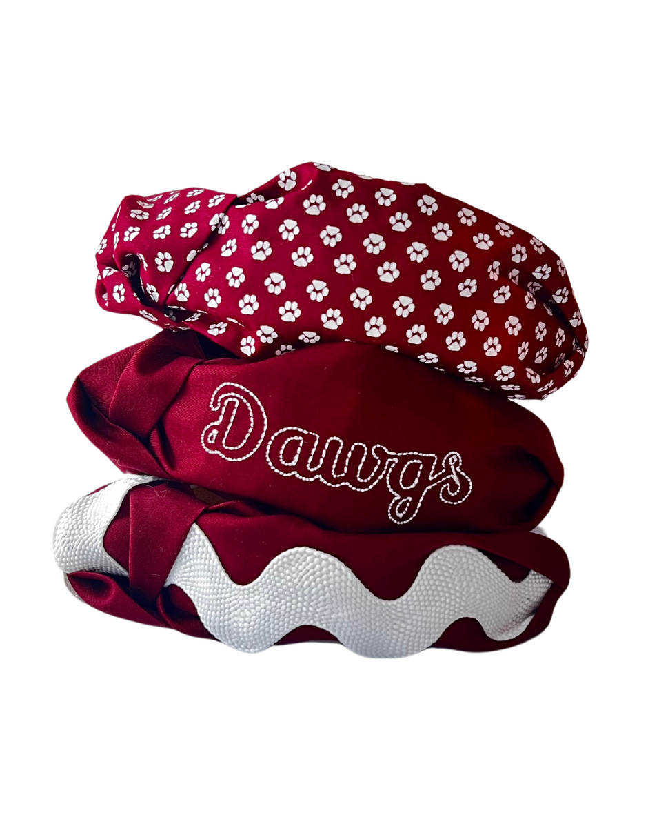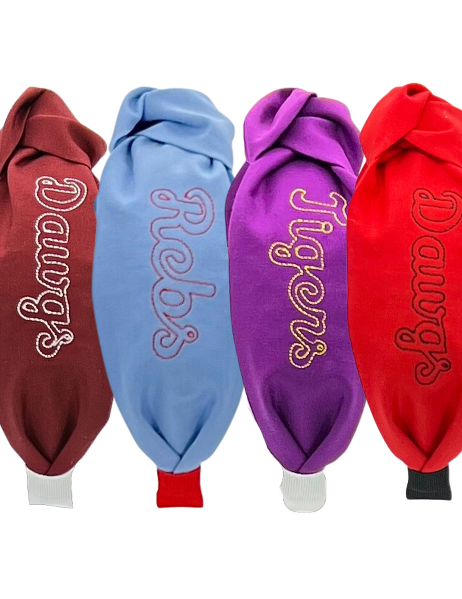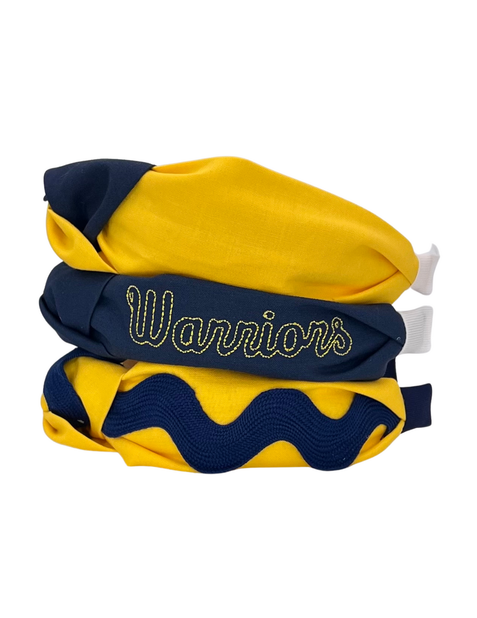 We love team spirit from elementary schools, little league, competitive cheer and beyond. There is not a team organization we don't think needs to be celebrated and what better way than with headbands! We can make up sets that vary in price point, we can do custom monograms or come up with one show stopper for a fundraiser. We like to figure out what is best for your spirit store or group and create just that. Teams can either go through Faire or contact us at info@prettyhappies.com for custom orders.